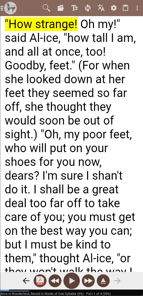 Raise text size in the reading view first so the current sentence and controls are easier to locate.
